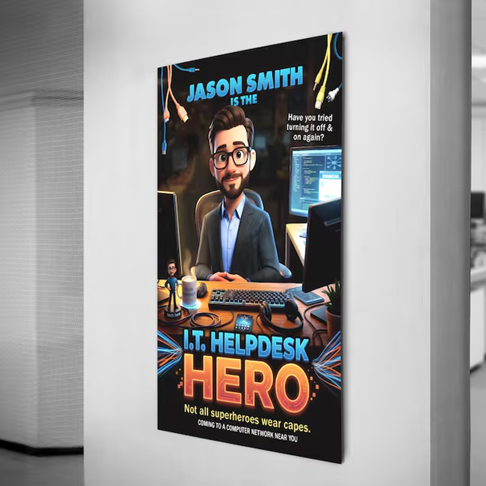Custom Tech Support Poster – I.T. Helpdesk Hero Pixar Print