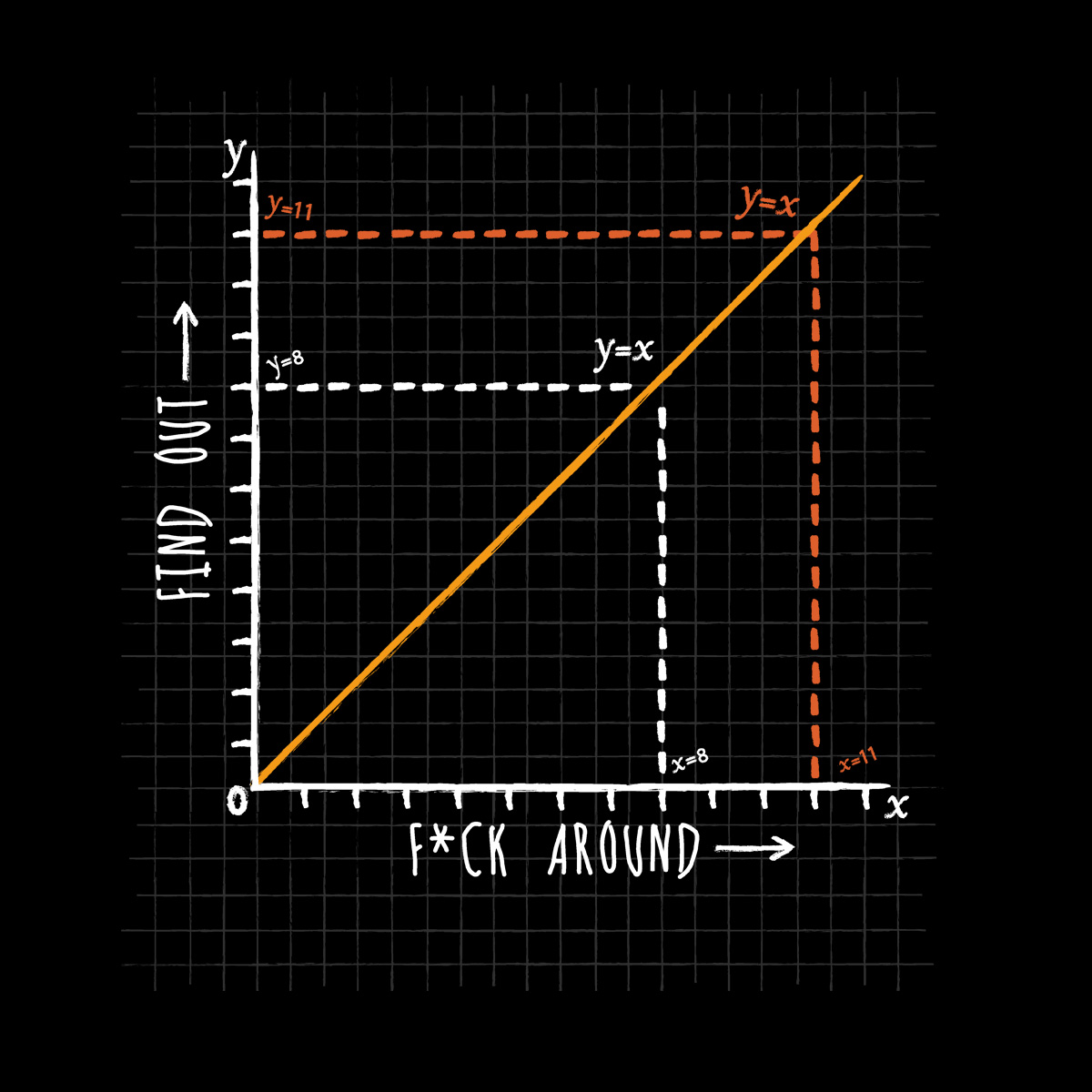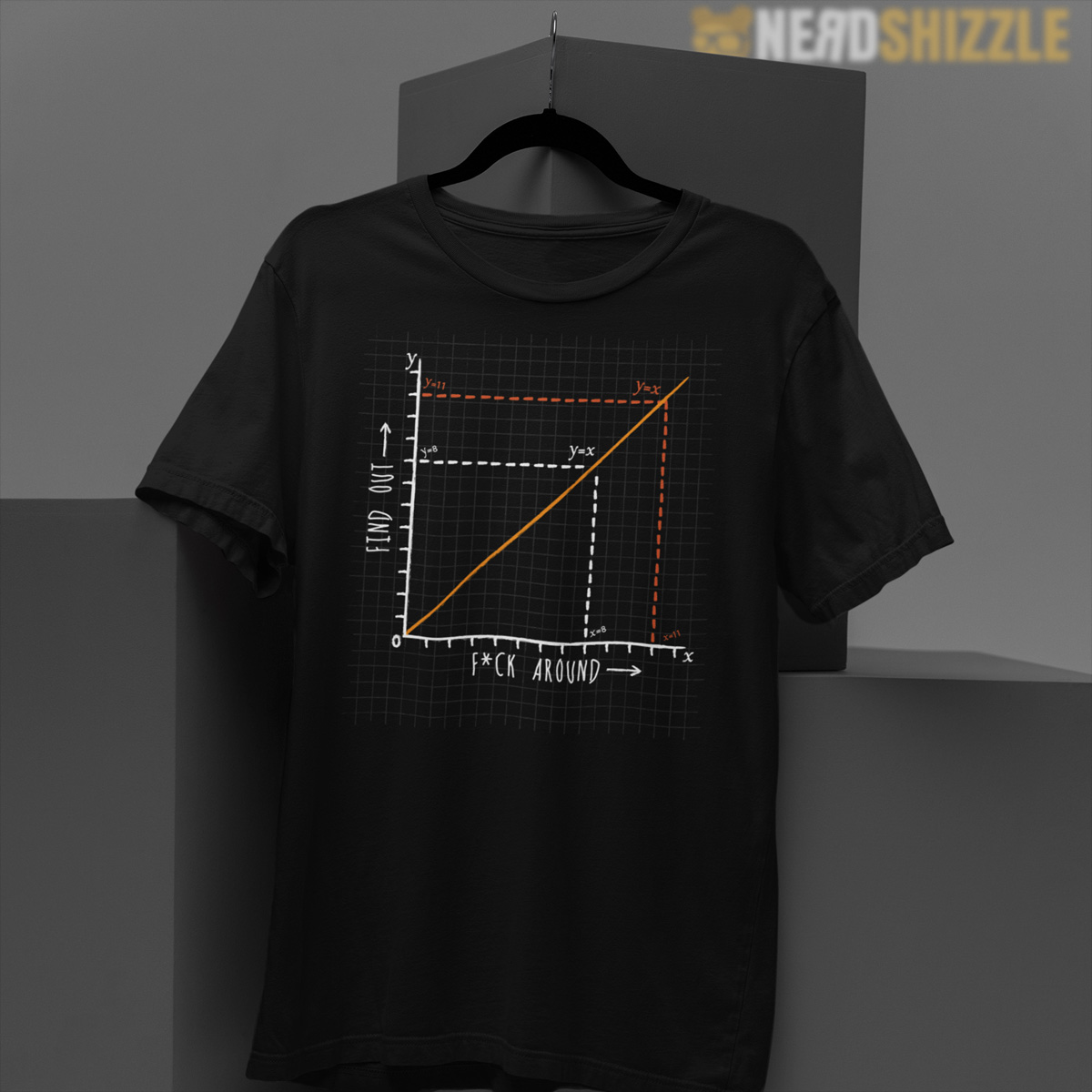 Fuck Around and Find Out – explained in this handy annotated line graph adorned on a t-shirt.