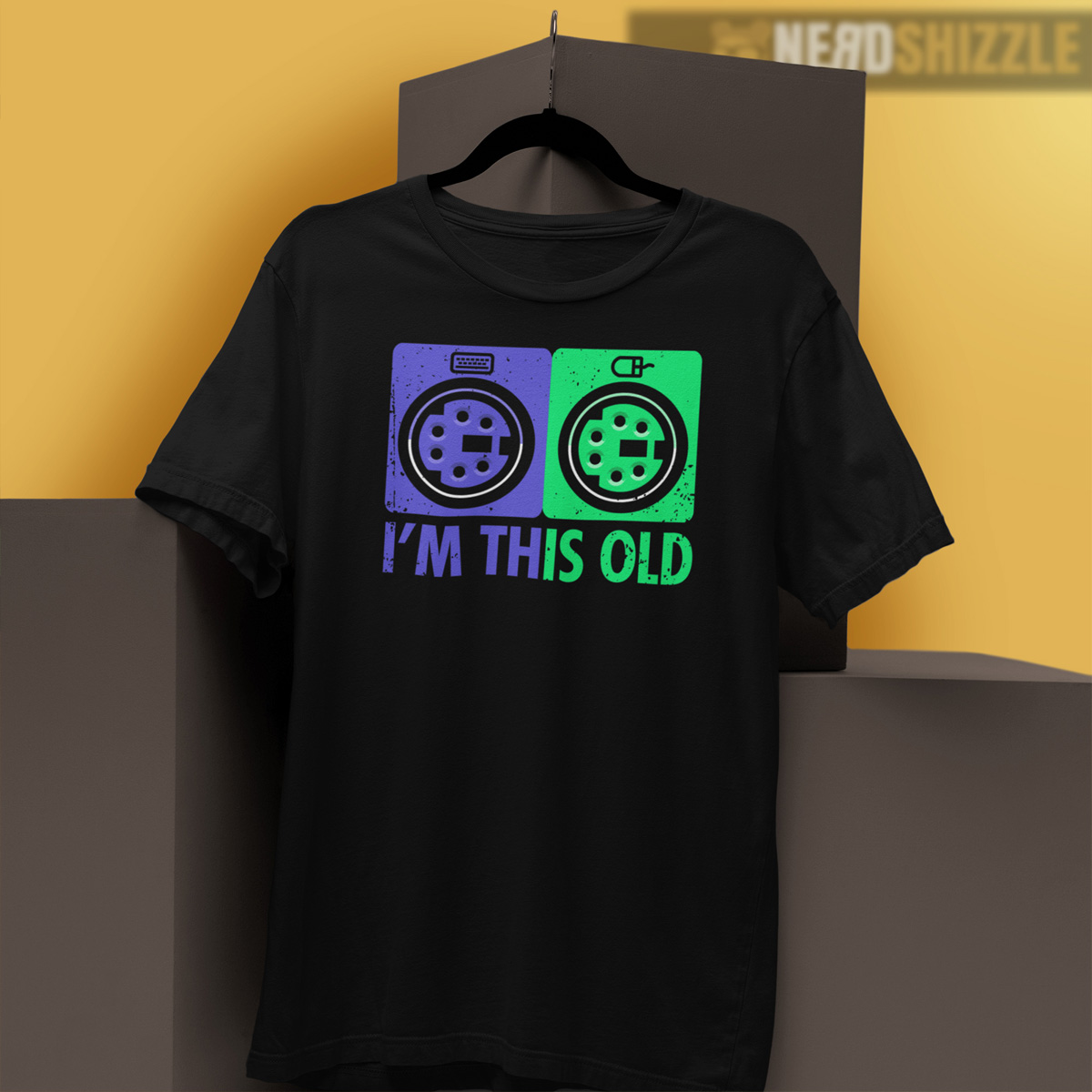 Well, if you want the original version of this design and not some poorly put together replica, here we have it! The colours are instantly recognisable to anyone familliar with PS/2 ports and the “I’m This Old” slogan will raise a knowing smile or two from anyone else old enough as well.