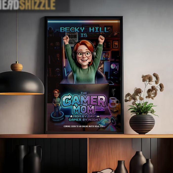 Celebrate the unstoppable queen of chaos and clutch moments with this customizable “Mom by Day. Gamer by Night” poster print — a heartfelt, high-energy tribute that fuses loving family moments with fierce gaming glory, all wrapped in a vibrant, Pixar-inspired style full of warmth, wit, and warrior spirit.